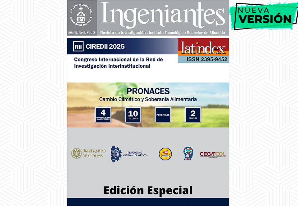INGENIANTES es una revista digital editada por el ITSM, indexada ante el Sistema Regional de Información en Línea para Revistas Científicas de América Latina, el Caribe, España y Portugal LATINDEX, con número de registro 25671, ISSN 2395-9452 , siendo reconocida como una revista arbitrada de calidad.